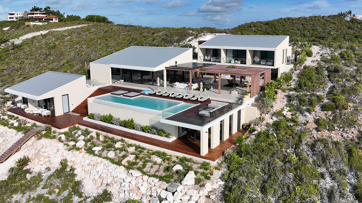 Situated in the heart of the Turtle Tail region of the island, this development sits overlooking the beautiful turquoise clear waters of Providenciales, boasting five (5) luxury bedrooms each with their own ensuite, a gym, a games room, a generous sized infinity swimming pool, and a jacuzzi.